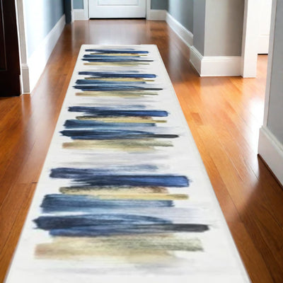 Home Outfitters 4' X 6' Beige Blue and Brown Striped Area Rug