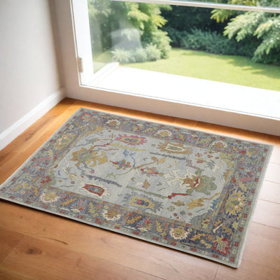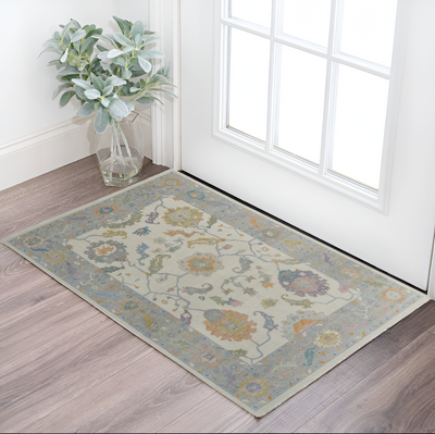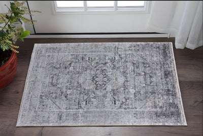 Home Outfitters 2' X 4' Gray and Ivory Floral Area Rug