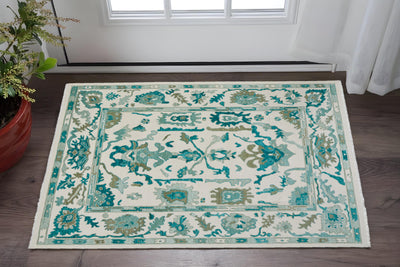 Home Outfitters 2' X 3' Teal And Ivory Geometric Area Rug