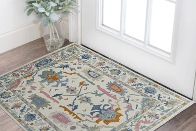 Home Outfitters 2' X 4' Distressed Aqua Green And Pink Printed Vinyl Area Rug With UV Protection