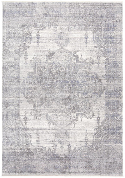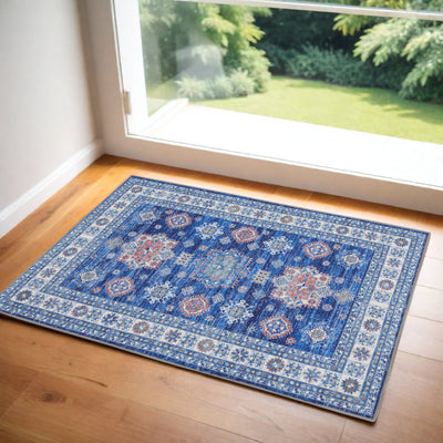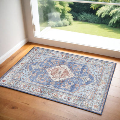 Home Outfitters 2' X 3' Blue And Ivory Medallion Distressed Area Rug With Fringe
