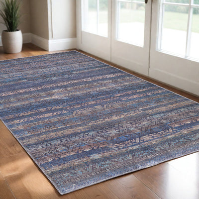 Home Outfitters 2' X 3' Beige And Blue Abstract Area Rug With Fringe