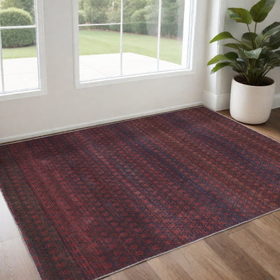 Home Outfitters 2' X 3' Ivory Red And Blue Oriental Area Rug With Fringe