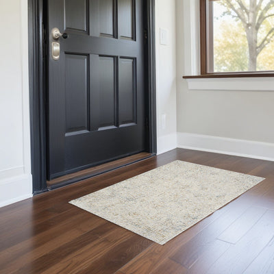 Home Outfitters 2' X 3' Beige And Gold Abstract Area Rug With Fringe