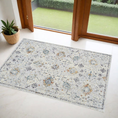Home Outfitters 2' X 3' Gray And Light Gray Oriental Area Rug With Fringe