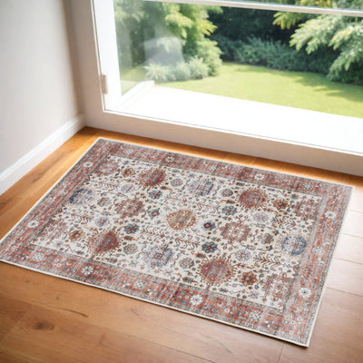 Home Outfitters 2' X 3' Ivory Orange And Yellow Oriental Area Rug With Fringe