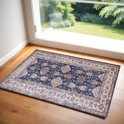 Home Outfitters 2' X 3' Blue And Beige Oriental Area Rug With Fringe