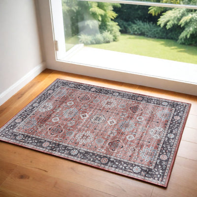 Home Outfitters 2' X 3' Brown And Orange Oriental Area Rug With Fringe