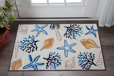 Home Outfitters 2' X 3' Ivory and Blue Marble Power Loom Distressed Area Rug