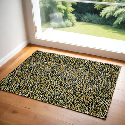 Home Outfitters 2' X 3' Gold And Ivory Floral Stain Resistant Area Rug