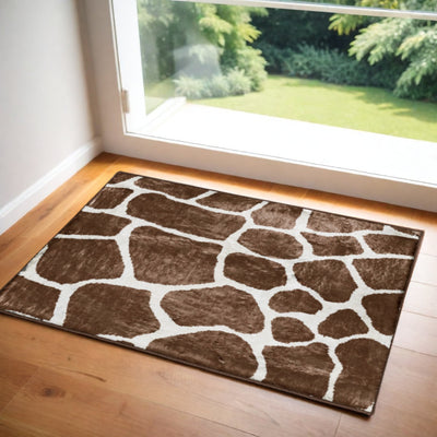 Home Outfitters 2' X 3' Brown and Ivory Abstract Power Loom Distressed Area Rug