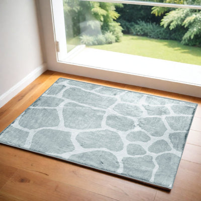 Home Outfitters 2' X 3' Blue Silver And Gray Geometric Stain Resistant Area Rug