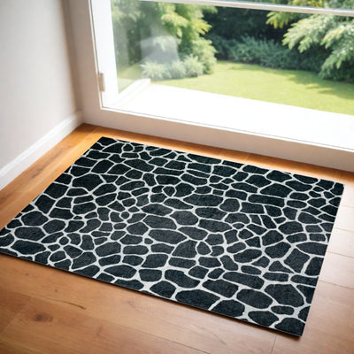 Home Outfitters 2' X 3' Black and Off White Abstract Machine Tufted Area Rug