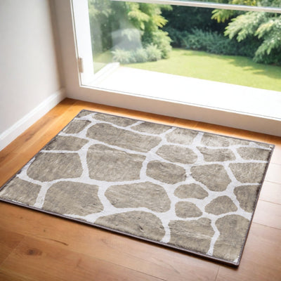 Home Outfitters 2' X 3' Ivory Tan And Gray Abstract Stain Resistant Area Rug