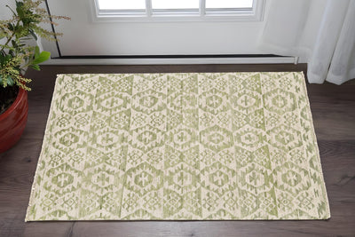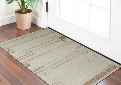 Home Outfitters 2' X 3' Ivory Taupe and Green Abstract Hand Tufted Worn Faded Area Rug