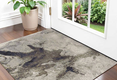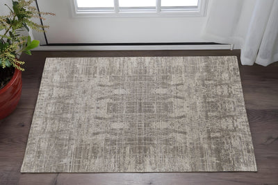 Home Outfitters 2' X 3' Gray Ivory and Taupe Oriental Power Loom Washable Area Rug