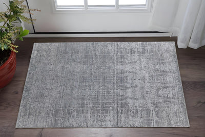 Home Outfitters 2' X 3' Gray and Ivory Oriental Power Loom Worn Faded Washable Area Rug