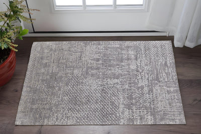 Home Outfitters 2' X 3' Gray and Ivory Abstract Hand Woven Worn Faded Area Rug