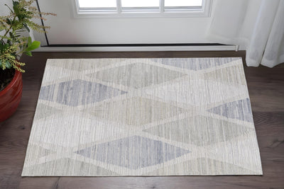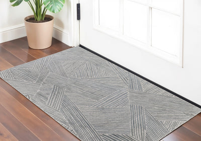 Home Outfitters 2' X 3' Gray and Blue Wool Geometric Hand Knotted Area Rug