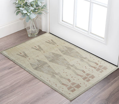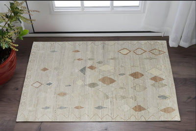 Home Outfitters 2' X 3' Tan and Gray Wool Geometric Hand Knotted Area Rug