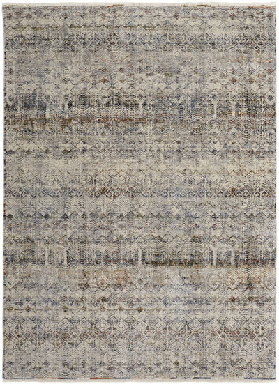 Home Outfitters 2' X 3' Ivory Taupe and Blue Abstract Power Loom Worn Faded Area Rug With Fringe