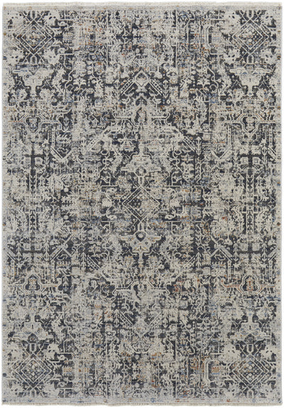 Home Outfitters 2' X 3' Gray and Ivory Oriental Power Loom Worn Faded Area Rug With Fringe