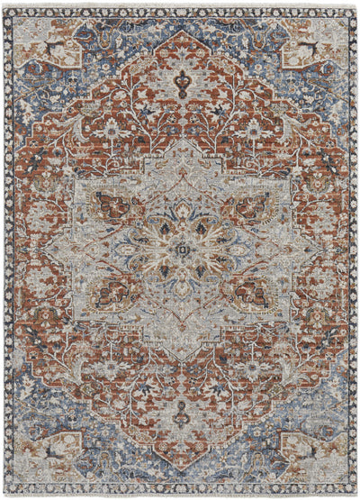 Home Outfitters 2' X 3' Gray Blue and Red Oriental Power Loom Worn Faded Area Rug With Fringe