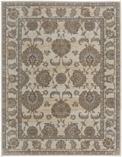 Home Outfitters 2' X 3' Ivory Taupe and Blue Floral Power Loom Worn Faded Area Rug With Fringe
