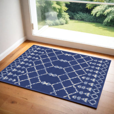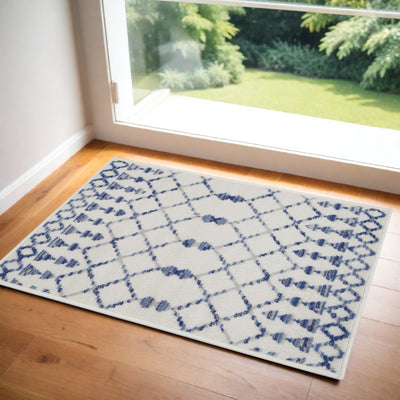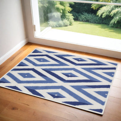 Home Outfitters 2' X 3' Ivory and Blue Wool Geometric Hand Knotted Area Rug