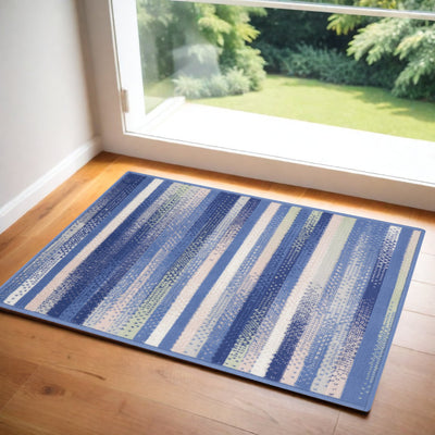 Home Outfitters 2' X 3' Ivory Green and Blue Abstract Power Loom Area Rug
