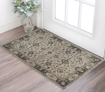 Home Outfitters 2' X 3' Ivory Tan and Gray Wool Floral Hand Knotted Area Rug