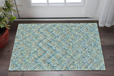 Home Outfitters 2' X 3' Green Blue and Yellow Wool Geometric Hand Knotted Area Rug With Fringe