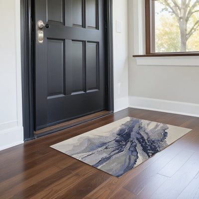 Home Outfitters 2' X 3' Gray Blue and Ivory Abstract Power Loom Area Rug