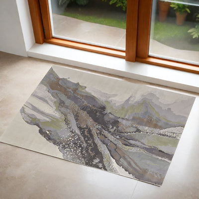 Home Outfitters 2' X 3' Gray Tan and Green Wool Abstract Hand Knotted Area Rug
