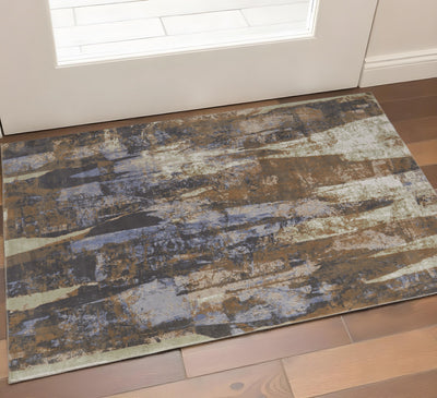 Home Outfitters 2' X 3' Blue Gray and Brown Abstract Power Loom Worn Faded Area Rug