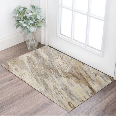 Home Outfitters 2' X 3' Ivory Blue and Brown Abstract Power Loom Area Rug