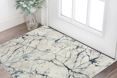 Home Outfitters 2' X 3' Ivory Gray and Blue Abstract Power Loom Worn Faded Area Rug