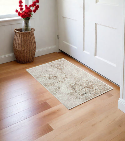Home Outfitters 2' X 3' Tan and Ivory Wool Floral Hand Knotted Area Rug