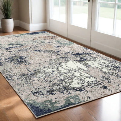 Home Outfitters 2' X 3' Ivory Green and Blue Abstract Power Loom Worn Faded Area Rug