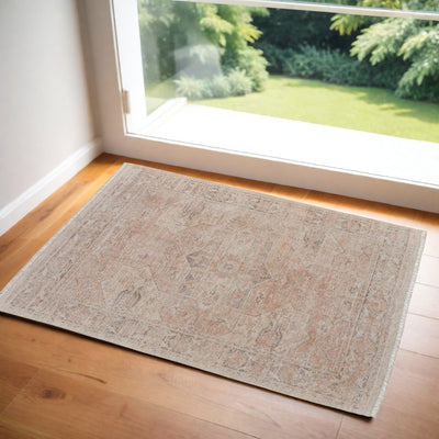 Home Outfitters 2' X 3' Ivory Gray and Pink Wool Floral Hand Knotted Area Rug