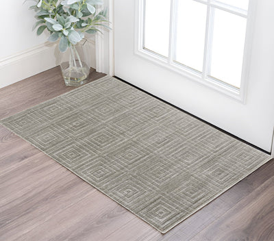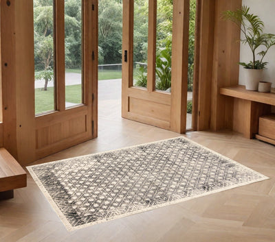 Home Outfitters 2' X 5' Gray and Beige Geometric Distressed Area Rug