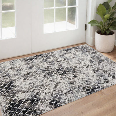 Home Outfitters 2' X 5' Gray and Ivory Abstract Distressed Area Rug