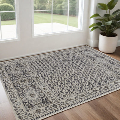 Home Outfitters 2' X 5' Gray and Ivory Geometric Distressed Area Rug