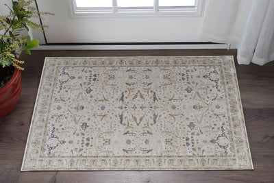 Home Outfitters 6' Beige and Ivory Floral Non Skid Runner Rug