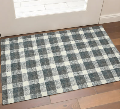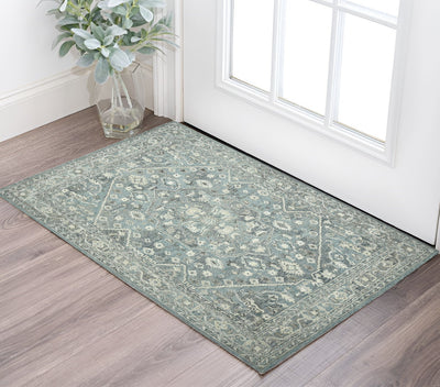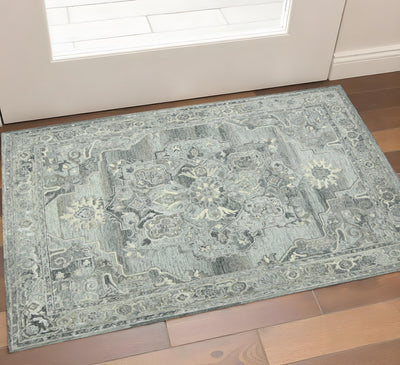 Home Outfitters 2' X 3' Gray and Blue Wool Southwestern Hand Knotted Area Rug