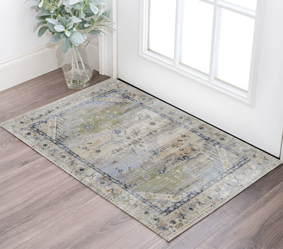 Home Outfitters 2' X 3' Ivory and Blue Geometric Distressed Area Rug