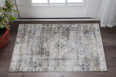 Home Outfitters 2' X 3' Ivory Blue and Gray Floral Medallion Area Rug