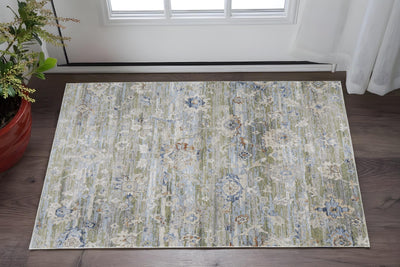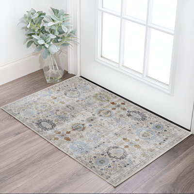 Home Outfitters 2' X 3' Ivory Blue and Gray Floral Non Skid Area Rug