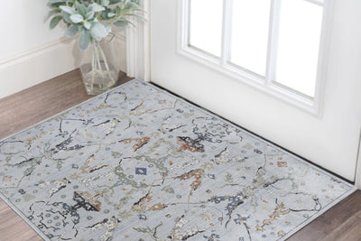 Home Outfitters 2' X 3' Gray and Blue Floral Area Rug
