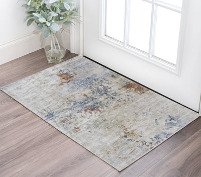 Home Outfitters 2' X 3' Ivory Blue and Gray Abstract Area Rug